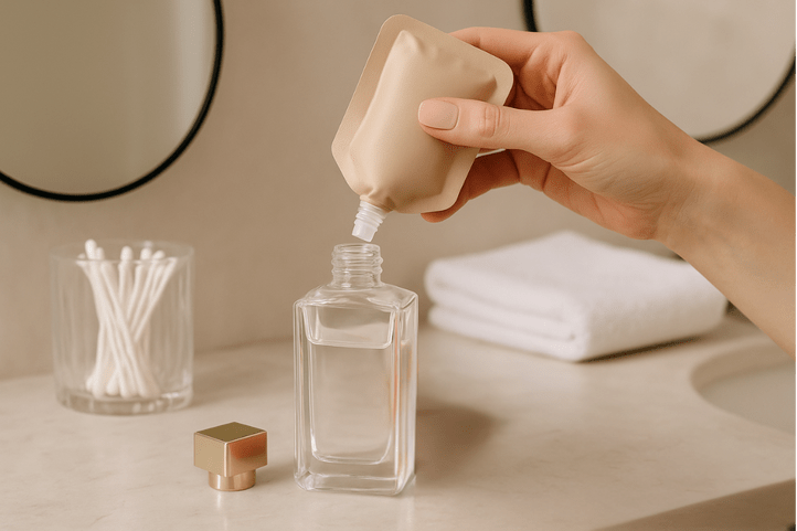 The real power of glass lies in its reusability. Many forward-thinking beauty brands now use glass bottles and jars as permanent containers, designed to hold refillable capsules or rechargeable pouches. This hybrid model significantly reduces single-use waste while keeping the visual and tactile quality of glass.
